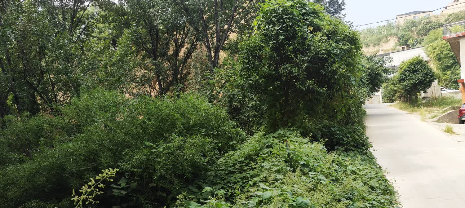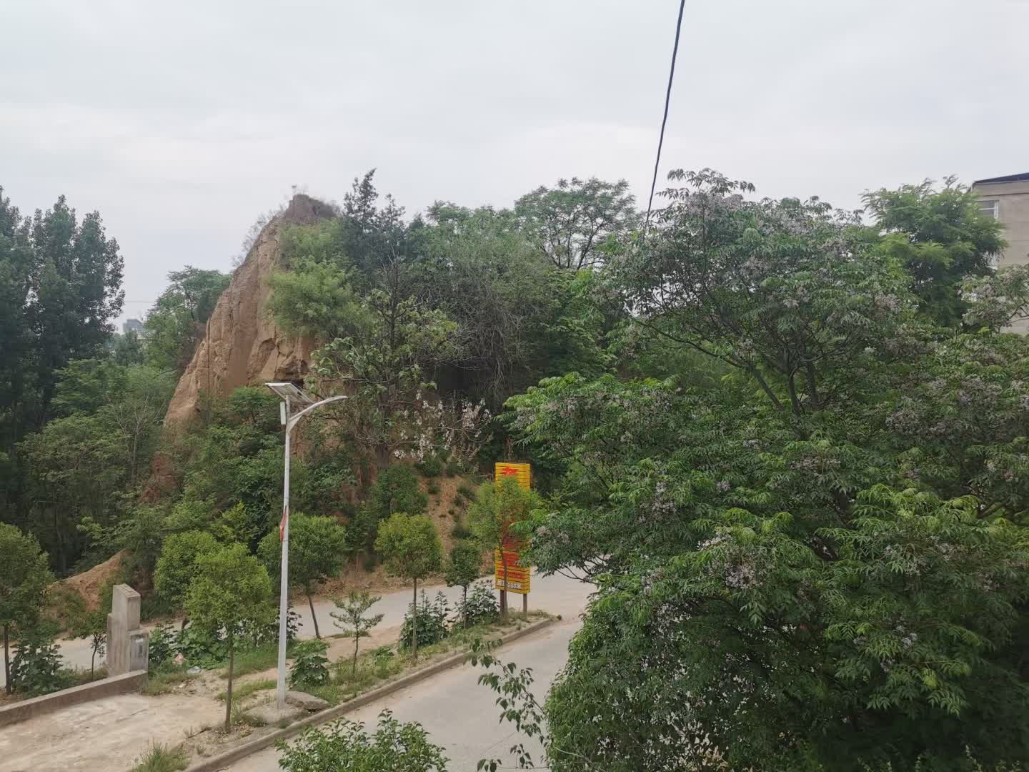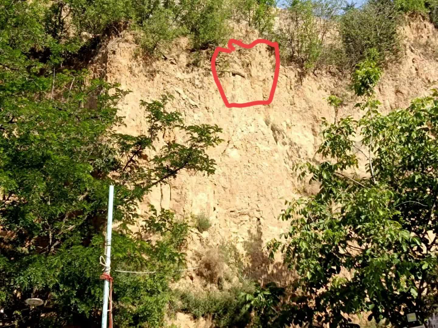 从傅相祠下209国道茅津路看傅相祠东侧山崖,有垮塌危险,急待做护坡保护。
