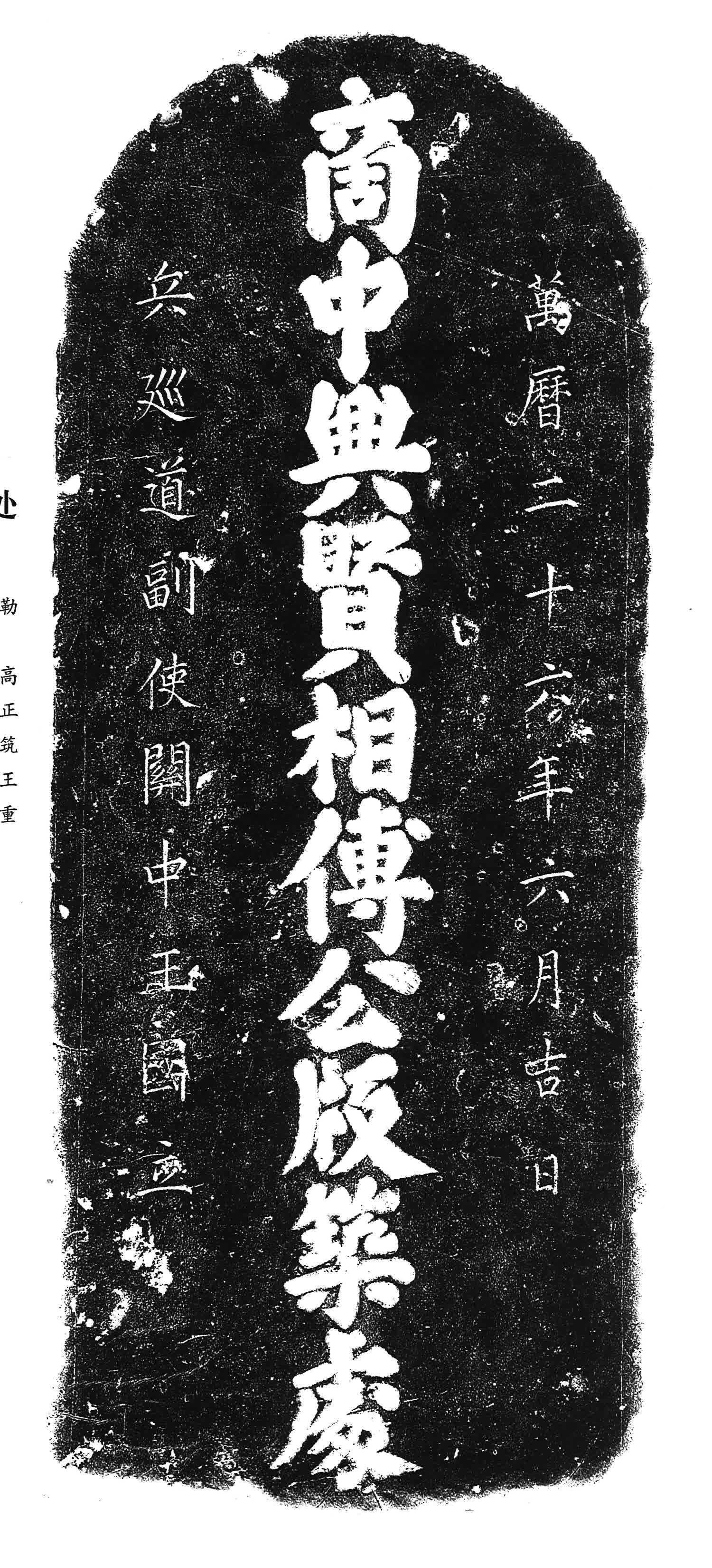 5.“商中興賢相傅公版築處”碑,明万历二十六年(1598)兵巡道副使王国立碑。