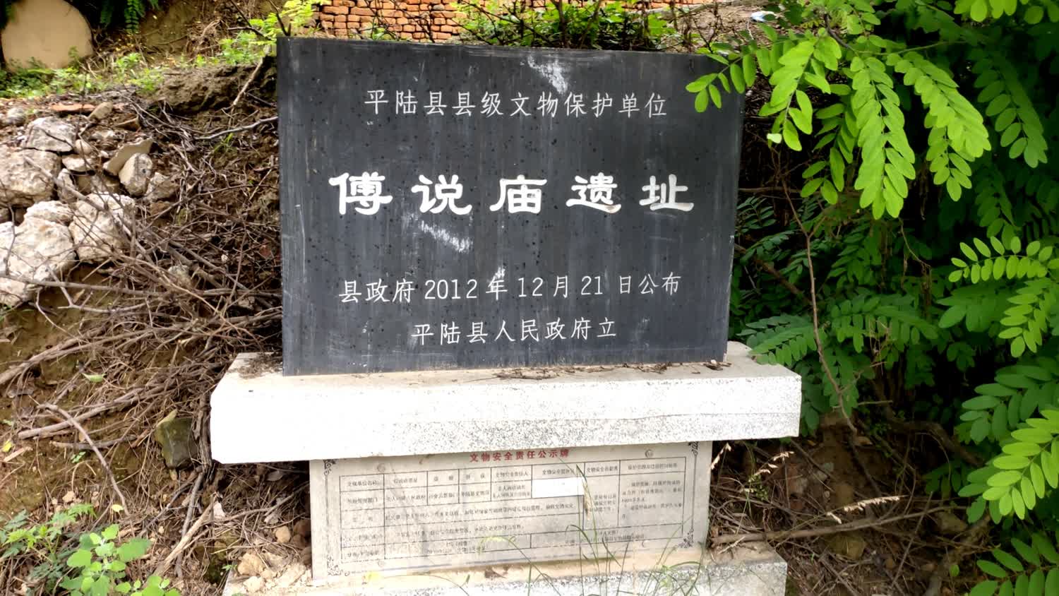 老“傅說庙”原址门口马路边陈列的傅說庙碑刻。下面介绍其内容提要。原文较长,之后将转载全文以飨读者。