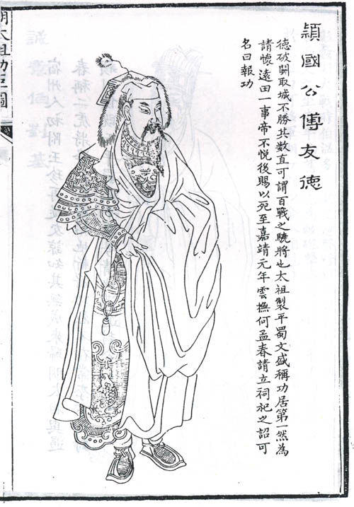 傅友德(1325年—1394年),字惟学 ,相城(今安徽淮北)人,因避黄河水患,逃难到颍州横涧村,初随李二,后随李喜喜投刘福通,龙凤三年(1357年)败于察罕帖木儿而入蜀,又为明玉珍所败,不为所用,转投陈友谅。龙凤七年(1361年)韩宋吴国公朱元璋亲伐陈友谅,克安庆,至小孤山,傅友德及丁普郎迎降,隶常遇春麾下。龙凤九年(1363年)随朱元璋等救援安丰韩林儿、刘福通,还援洪都,参加鄱阳湖之战。龙凤十年(1364年)朱元璋亲到武昌督兵攻城,率数百人夺高冠山,陞雄武卫指挥使。龙凤十一年(1365年),随常遇春克安陆、襄阳、泰州。龙凤十二年(1366年)随徐达克淮安、安丰。吴元年(1367年)扩廓帖木儿兵侵徐州,大破元军,陞江淮行省参知政事。