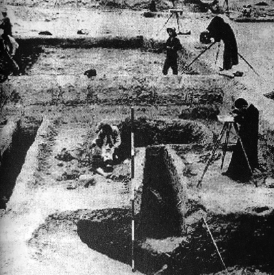 从民国十七年(1928年)到民国二十六年(1937年),傅斯年在百忙中,数次亲到小屯视察指导。规模最大的一次发掘是第13次,时在民国二十四年(1935年)夏。傅斯年偕同法国汉学家伯希和来到安阳。石璋如回忆说:“那时是殷墟第13次发掘,所用人力在三百人以上,为殷墟发掘以来规模最大的一次,也是中国的考古工作在国际间最煊赫的时期。约在五月中旬,气候已经相当的热了,他和法国的东方学者伯希和先生到达安阳……伯希和先生对着那样伟大的陵墓,那样排列整齐的小墓,那样大量并精美的灿烂的器物,在孟真所长面前,不断的惊讶和赞叹!”九·一八事变以后,日军侵华形势日急,殷墟发掘被迫停止下来。