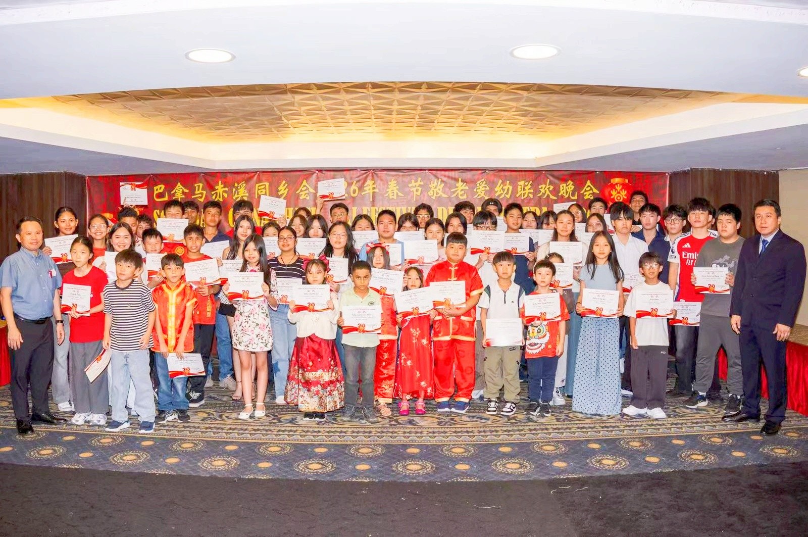 瑞气盈门,金马贺岁。大年初五晚,巴京龙凤酒楼内灯火辉煌,乡音袅袅,巴拿马赤溪同乡会2026年丙午新春“尊老爱幼”联欢晚会在此盛大举行。来自四面八方的赤溪籍乡亲、侨界友人欢聚一堂,共叙乡情,传承中华美德。