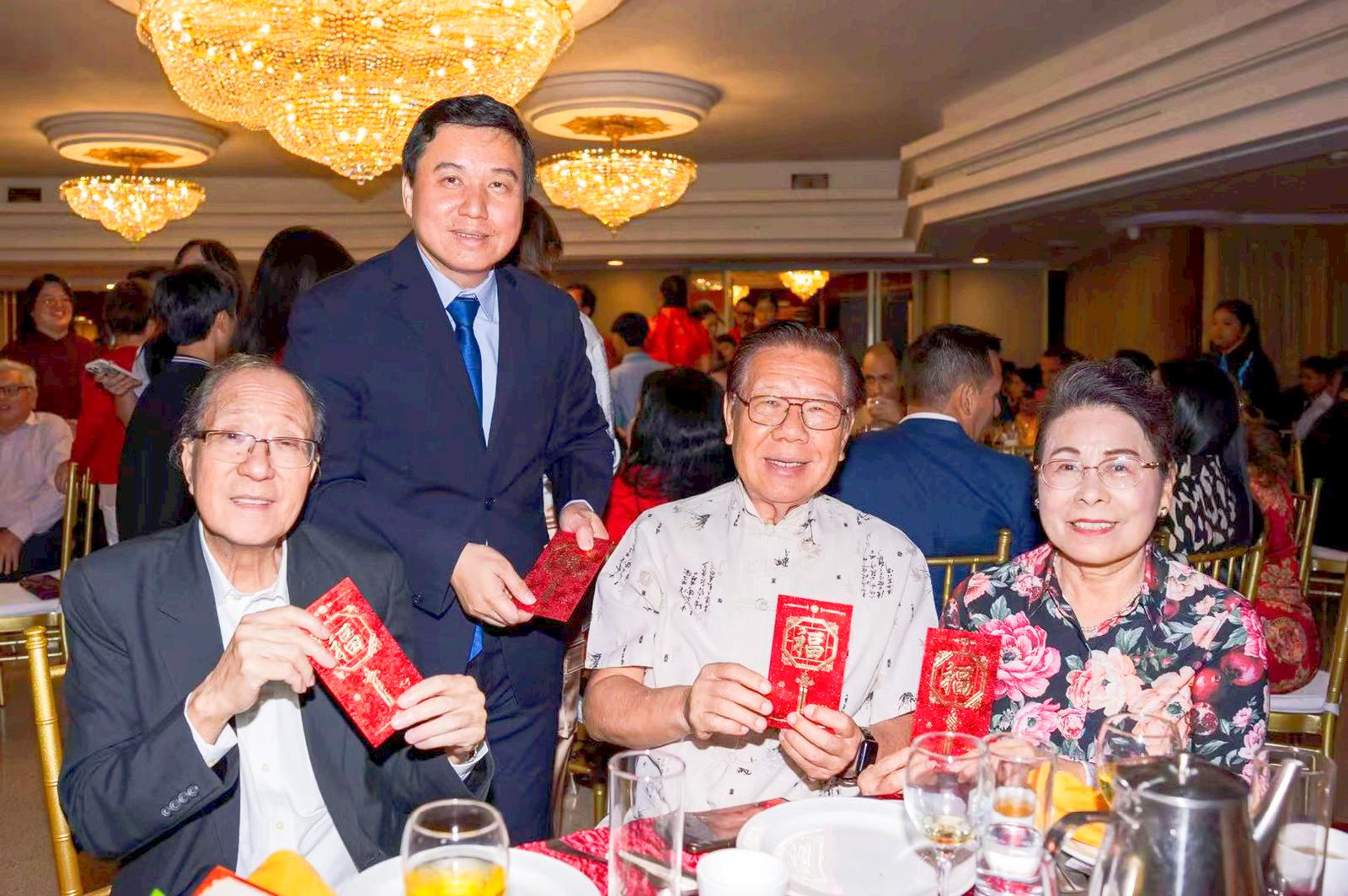 当晚设宴63席,座无虚席。既有沧桑长者,也有朝气少年,更有众多鼎力支持同乡会的各界友人。晚宴热气腾腾,乡音与油香交织,在异国酿就最醇厚的年味。