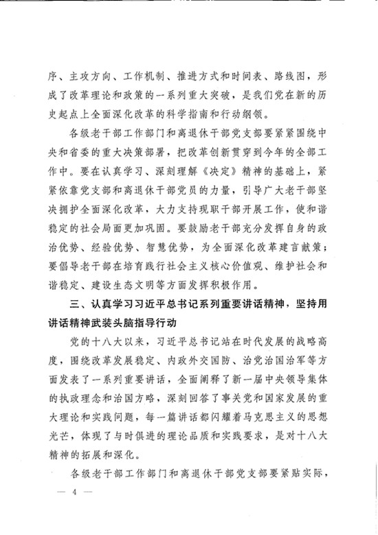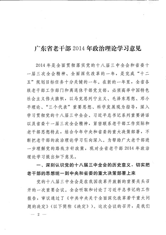 各工业园区党(工)委,各镇(街、场)党(工)委,市直各单位党组织: 现将省委老干部局印发的广东省老干部2014年政治理论学习意见(详见附件)转发给你们,请结合落实离退休干部政治待遇的实际,做好相应学习计划,切实组织好离退休干部2014年的政治理论学习活动。 附件:广东省老干部2014年政治理论学习意见