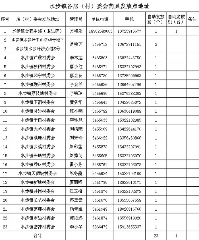 台山市各镇(街)居(村)委药具发放点一览表(2017年)