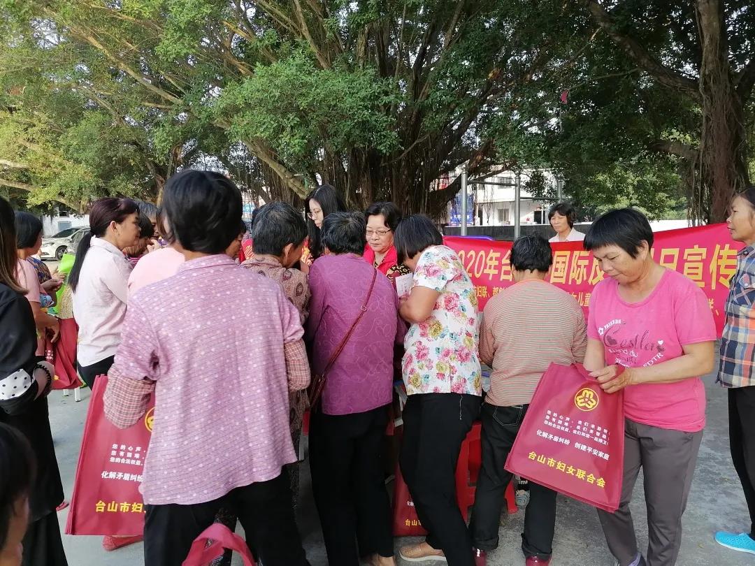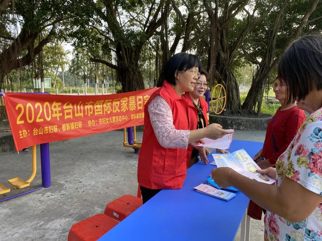 11月25日是国际反家暴日。为了预防和制止家庭暴力,提高我市妇女反家暴意识,11月25日下午,市妇联、都斛镇妇联、市妇女儿童活动中心、广东省妇女维权与信息服务站(台山站)在都斛镇坦塘村联合开展2020年台山市“国际反家暴日”宣传活动。