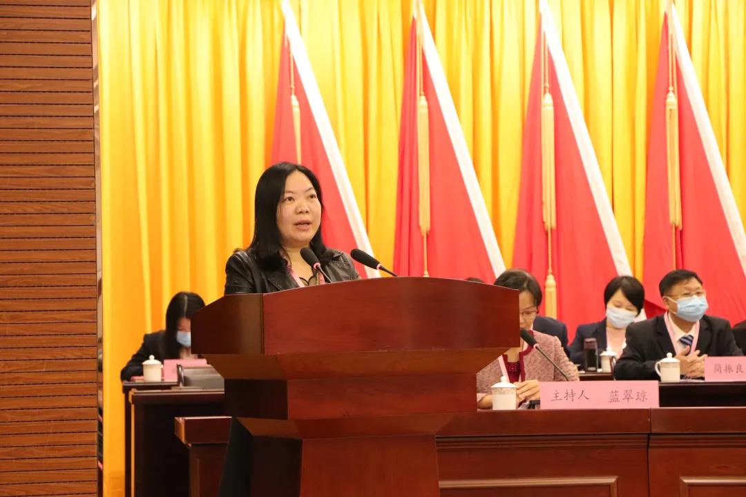 会上,蓝翠琼代表台山市妇女联合会第十二届执委会作了题为《高举习近平新时代中国特色社会主义思想伟大旗帜 团结带领广大妇女为实现台山经济社会高质量发展和开启全面建设社会主义现代化国家新征程贡献巾帼力量》的工作报告,全面总结过去五年的发展成就,确定今后五年的奋斗目标,部署妇女工作的主要任务。