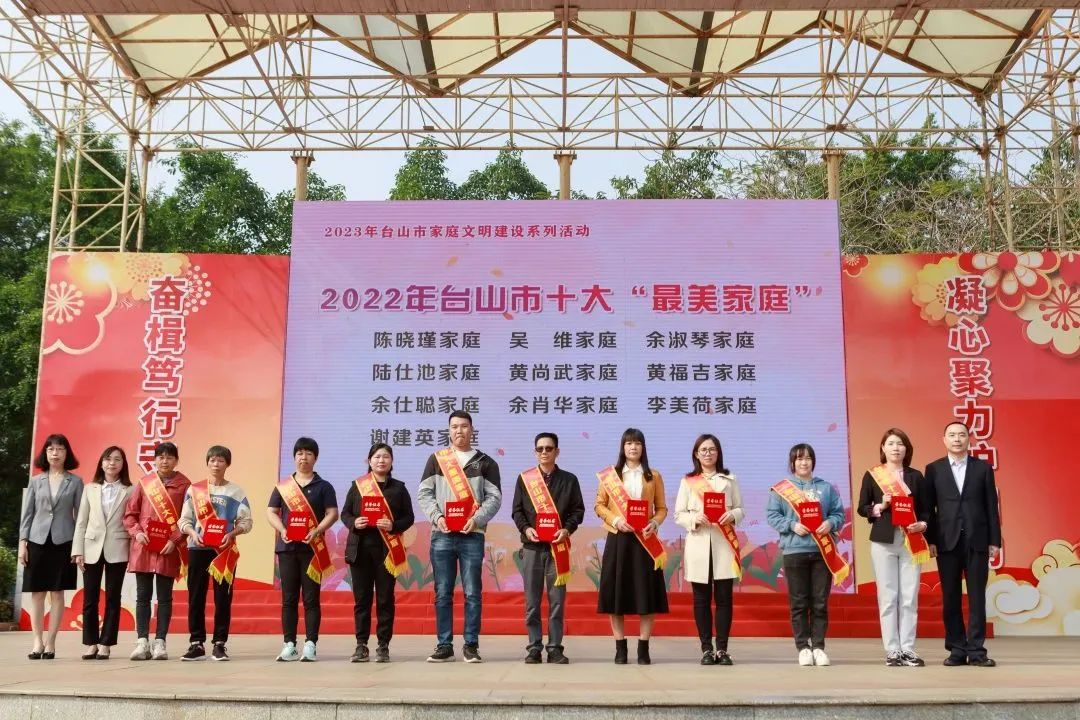△对2022年台山市十大“最美家庭”进行颁奖