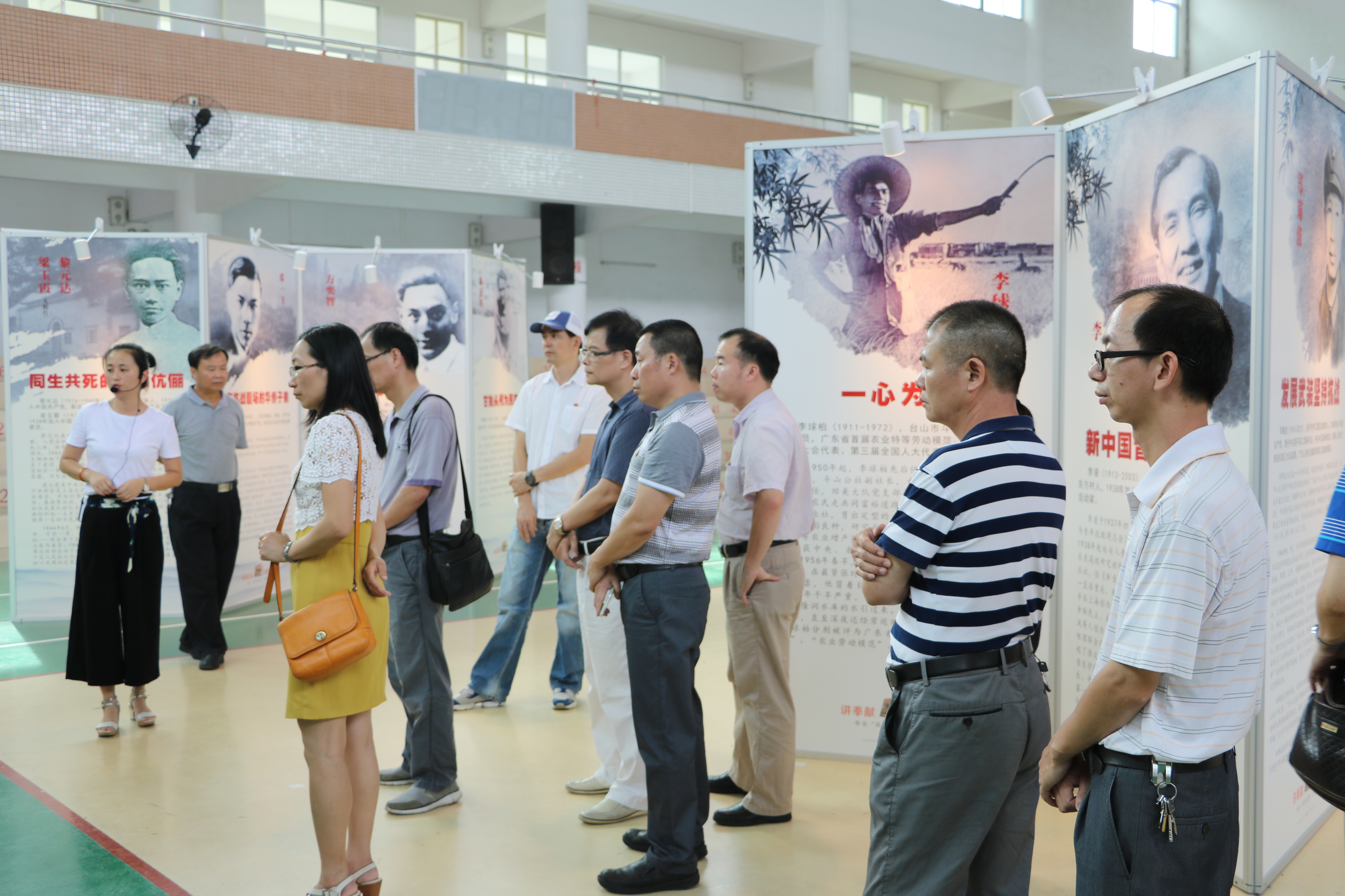 (我会机关党员(右一、右二)参观“党的好儿女——江门史上的共产党员先进事迹巡回展”)