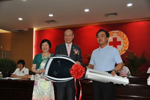 甘炳棠先生伉俪代表旅港乡亲李伯荣先生向市红十字会捐赠运送救灾物资车辆