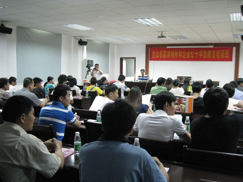 2013年7月12、13日,市红十字会在办公楼四楼培训室举办游泳场所和工厂企业红十字急救员培训班,参加培训人员68人。培训班上,市红十字会常务副会长李晓英向部分游泳场所和工厂企业发放了36个红十字急救箱,市红十字会秘书长黄杰林现场讲述急救箱使用说明和管理制度。市卫生职业技术学校马秀文、李科两位老师和市红十字会志愿者黄周权、樊春红老师现场向参训学员讲述心肺复苏、创伤急救处理知识和预防中暑、溺水等事故处理常识,讲课以互动、模拟操作为主,形象生动、趣味性强,参训人员都学有所成,顺利通过相关考试。