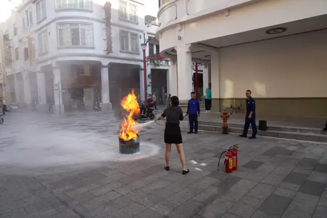 消防安全无小事,台山市检察院持续发力,围绕消防隐患进行监督的同时,11月7日,联合市人大常委会台城街道工委、市救援消防大队、市应急管理局、环南社区等开展“全民消防、生命至上”公益宣传会,由检察官宣讲《消防法》知识,向居民群众说明在日常生活中应履行预防火灾、灭火救援的义务及造成火灾需承担的法律责任等,并在西门墟骑楼历史文化街区开展法治宣传及消防安全演练,通过派发宣传手册、开展消防器材使用培训等方式,帮助群众树立消防意识,掌握消防技能。