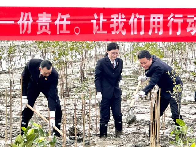 2月1日上午,台山市检察院联合市林业局、汶村镇政府,在汶村镇红树林湿地保护区开展“世界湿地日”红树林植树活动。参加活动的单位工作人员与企业、当地群众代表一起在湿地保护区种植超300株白骨壤、桐花树、秋茄等红树林树苗。当日下午,在汶村镇白沙村举办“世界湿地日”普法宣传活动。通过主办方联合发表红树林湿地保护宣言、最美护林员分享护林心得,以及红树林湿地保护宣传展览、发放保护红树林湿地和公益诉讼宣传资料等形式,让群众了解保护湿地的重要性、湿地与人类生存的关联性,形成关心湿地、爱护湿地、参与湿地保护的社会氛围,增强了广大群众的湿地保护意识。