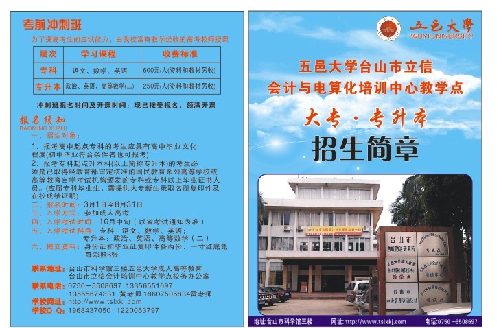 [图片]五邑大学台山市立信会计与电算化培训中心教学点招生简章