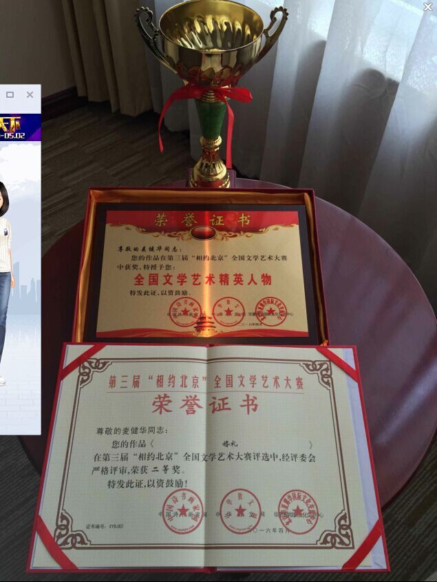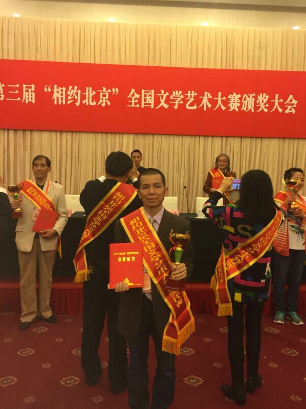 2016年4月23日下午,由中国诗书画家网、中华散文网、华夏博学国际文化交流中心主办的第三届“相约北京”全国文学艺术大赛颁奖大会在北京人民大会堂宾馆隆重举行,有来自全国各地100多名文艺家代表参加颁奖大会,我市作家麦健华有幸被邀请参加。