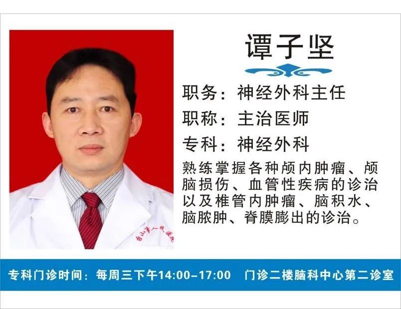 科室介绍 神经外科是医院重点建设学科,是以颅脑损伤、脑血管病、脑肿瘤的手术和脑血管病的介入治疗为重点的综合神经外科。神经外科现有病床53张,医护人员30人,其中主任医师1名,副主任医师3名,主治医师4名,副主任护师1名,主管护师3名,护师13名。每年手术例数超过400台。具体包括:1、重型颅脑损伤的手术及抢救治疗。2、出血性及缺血性脑血管疾病的手术治疗:显微镜下脑内血肿清除术、颅骨钻孔引流术、开颅动脉瘤夹闭术,大面积脑梗塞去骨瓣减压术等)。3、出血性及缺血性脑血管疾病的介入治疗:脑动脉瘤介入栓塞术、急性脑梗塞机械取栓;颅内外血管成形术(球囊扩张术和支架置入术)。4、脑肿瘤的手术治疗:脑膜瘤、听神经瘤、胶质瘤等切除术。5、脑积水的治疗6、三叉神经痛与面肌痉挛的微血管减压术。科室一直秉承“以病人为中心”的宗旨,以专业技术和热诚服务为依托,努力工作,积极开拓,专科品牌与美誉度逐年攀升。 专家介绍