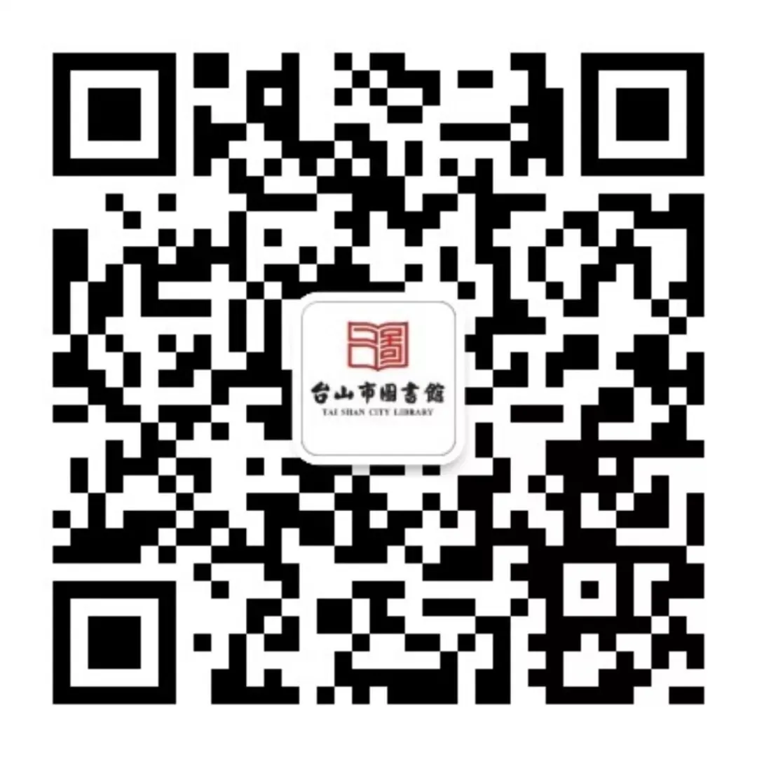 1、搜索关注“台山市图书馆”微信公众号或扫描下方二维码;