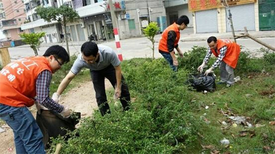 广海镇党在群众路线教育实践活动中,有群众反映在镇文体广场的绿化带上卫生环境比较差。针对这一问题,广海镇团委率先行动,依托“广海镇党员义工服务队”,组织党员义工到镇文体广场开展清洁环境义工活动。此次活动清扫了卫生死角、清除了陈年垃圾,即使很多垃圾塑料袋都藏匿于草丛中在很难清扫,参加活动的党员义工们不得不用手一点点的将垃圾清理出来,并清运到垃圾箱内。并向居民和过往行人宣传要爱护环境,保持公共环境的清洁。用实际行动践行群众路线,还给了广大群众一个整洁的休闲娱乐环境。
