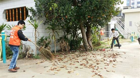 广海镇党员义工服务队到镇文体广场开展清洁环境义工活动