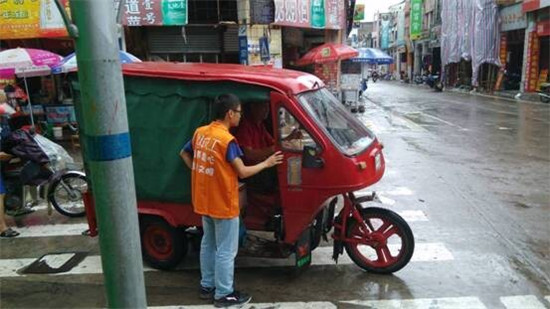 为倡导文明出行,共建幸福广海,6月10日上午,广海镇团委组织党员义工到镇区开展交通秩序维护行动。从镇区北门到南门头,每一个路口都有义工的身影。虽然当天下着小雨,但是义工们的热情很高涨,对过往的行人及车辆都耐心细致地进行劝导,确保了大家的安全出行。
