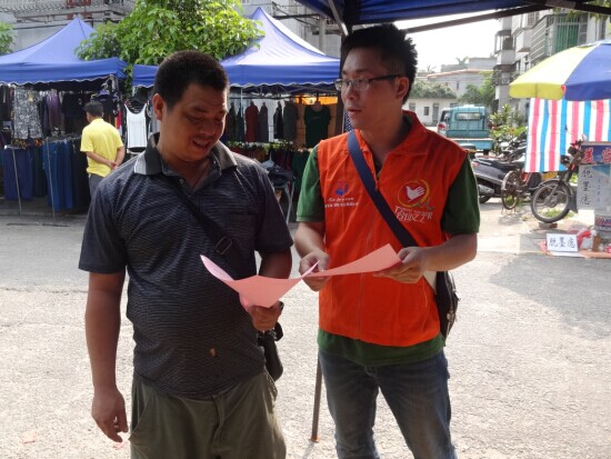 “便民服务”活动现场以张挂宣传标语、宣教挂图及知识宣传展架立体地向群众宣传了交通安全、饮食卫生和计生工作等各方面的知识,通过设立计生、供电、派出所、卫生院、妇联等多个咨询点等形式向群众提供现场咨询和业务办理,为其解答有关法律法规和业务问题,并提供义诊服务、凉茶供应、手机维修等免费服务。由于咨询日之前镇团委已通过张贴活动预告和短信等形式进行了宣传,引起了“圩日”赶圩群众和周围居民的广泛关注和热情参与,各部门当天共接待群众咨询100多人次,派发宣传资料2200多份。
