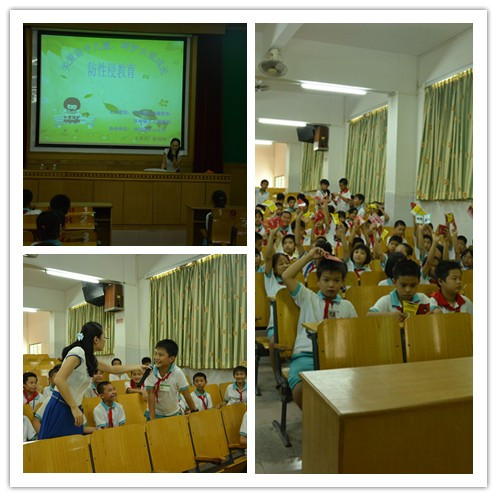 课上,义工陈老师以从认识我们身体的隐私部位、如何分辨和防范性侵害、遇到性侵害时该怎么做等方面与同学们进行了互动交流和讲解示范。起初,孩子们都有些腼腆,游戏过后,学生们开始变得积极踊跃,有的还主动参与教学做示范。在讲解如何防范性侵害时,陈老师告诉同学们不要随便跟陌生人走,不要接受陌生人给的东西,不要随便坐陌生人的车,夜晚不要单独出行等注意事项,防范性侵害。在讲到遭受性侵害之后怎么办时,陈老师告诉同学们,人多时,要大声求助;无法求助时,要在保障生命安全的前提下,想办法逃脱。如果遭遇了性侵,要把经过告诉信任的人,并及时报警,不要急于洗澡洗衣物,及时让家长带去医院检查。陈老师还特别强调,坏人可以骗,不替坏人保守秘密。课后,发放了由中华社会救助基金会儿童安全基金女童保护项目组提供的宣传小册,整个课堂气氛活跃,互动效果好,孩子们充分掌握了学习内容,达到了教学目的。