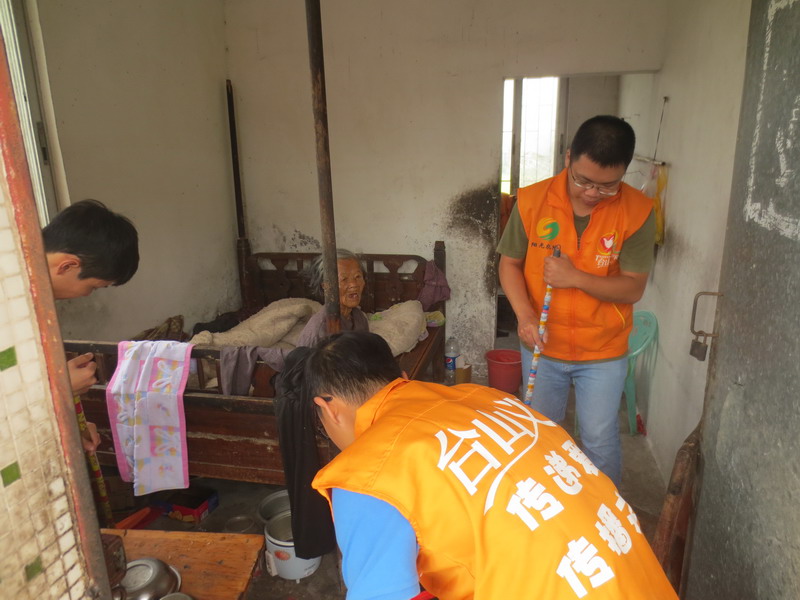 党员义工们来到冲蒌敬老院,开展美丽家园和幸福社区项目活动。党员义工们一起清扫庭院,拔杂草,倒垃圾,为老人们铺床折被,擦桌扫地,营造良好的生活环境。他们看望住在这里的老人,与他们促膝谈心,并祝福老人们幸福安康、健康长寿,往日十分安静的敬老院一下子热闹起来,其乐融融。