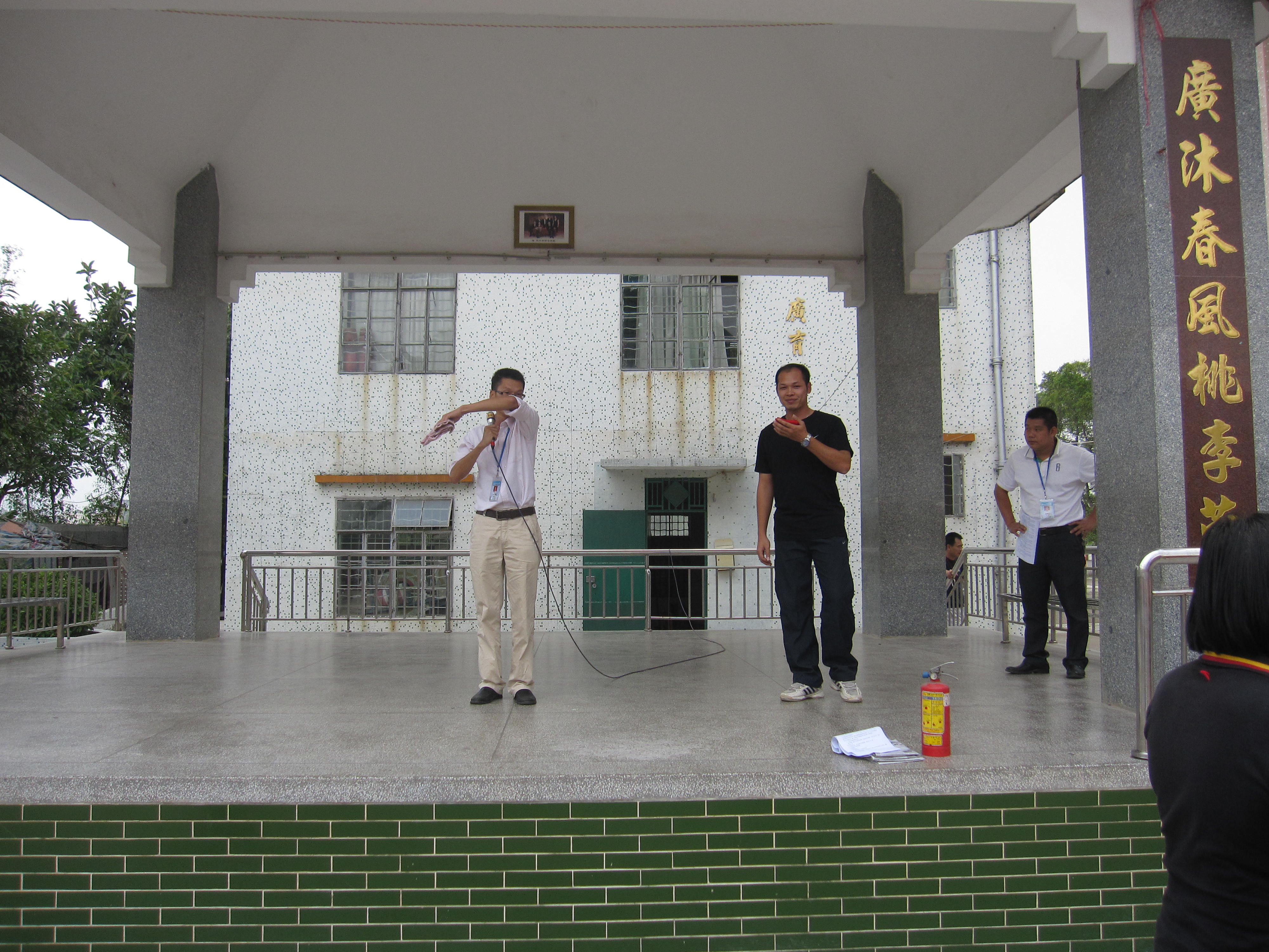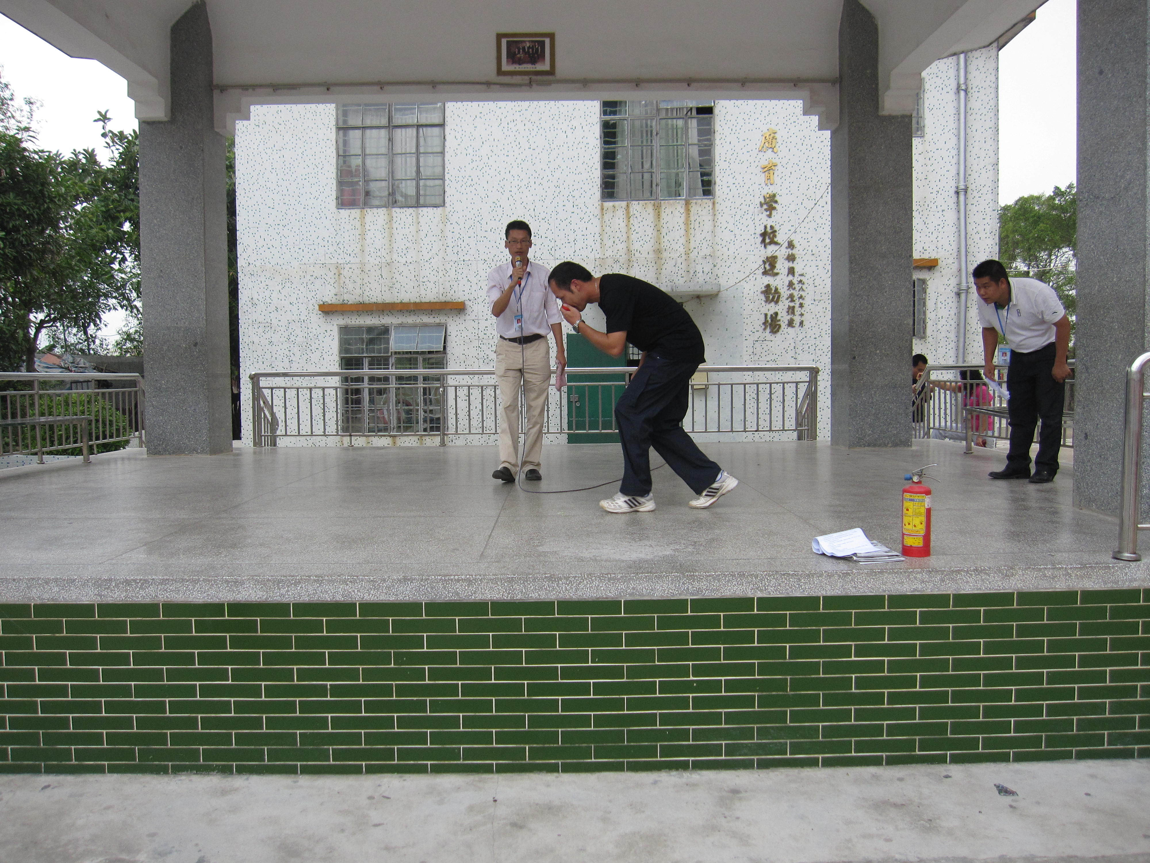 全校师生全部安全疏散完毕后,学校还安排了黄健德主任对师生们从如何报火警、火灾的预防、火场自救及逃生方法等消防安全基本常识进行了讲解。对师生进行了一次消防安全教育。接着,由体育教师马俊仪老师对逃生的方法进行了生动的示范,另外,还现场演示了灭火器如何使用的操作程序,并让部分师生现场操作用灭火器灭火的过程,使全体师生们掌握了正确使用灭火器的操作方法。