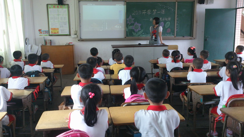 我校组织学生观看《开学第一课》 9月3日下午,我校组织全体学生观看2013年秋季《开学第一课》。本次主题为“乘着梦想的翅膀”,分为三堂课:第一堂课“有梦就有动力”,第二堂课“有梦就要坚持”,第三堂课“有梦就能出彩”。