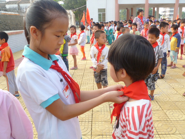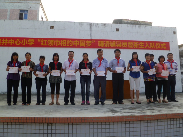 在这次主题队会上,我校98位新队员光荣地加入了少先队这个大集体。同学们在队旗下佩戴上了向往已久的红领巾并庄严宣誓。老队员代表的讲话,表达了全体新队员的心声,“为共产主义事业而奋斗,时刻准备着!”同时我校聘请深井镇派出所警长林兆鹏同志为我校校外辅导员,大队还聘请13位优秀教师为各中队的辅导员。