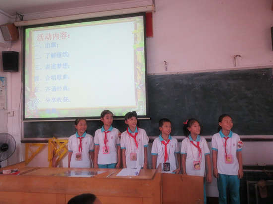 在这次主题中队会上,队员们通过了解组织,讲述梦想,合唱歌曲,齐诵经典,分享收获,等形式,引导少先队员感受先烈的报国志向和实现民族振兴、国家富强、人民幸福的理想追求,增强少先队员对少先队组织的光荣感,用中国梦激发孩子们的理想梦,报国梦。