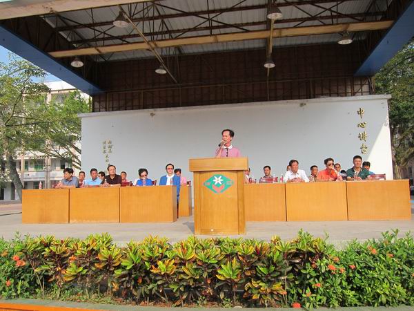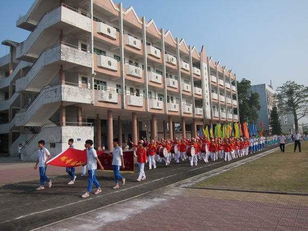 温国俊副校长高度赞扬了学校在体育工作中取得的成绩,阐述了这次运动会的实质意义,并希望每位运动员精神饱满,拼出成绩,赛出风格!随后裁判员代表、运动员代表先后进行庄重的宣誓。最后,由名誉校长梅贤添先生郑重宣布本次运动会正式开始。