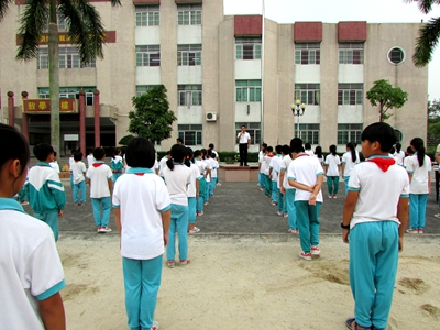 学校负责安全工作的李秀梅主任先做好演练方案,明确告诉同学们在疏散过程中的注意事项。下午的安全演练教师全部到位,做足安全措施。报警铃拉响后,同学们迅速撤离,到大操场排队集中,然后由谭有才校长作总结性发言。