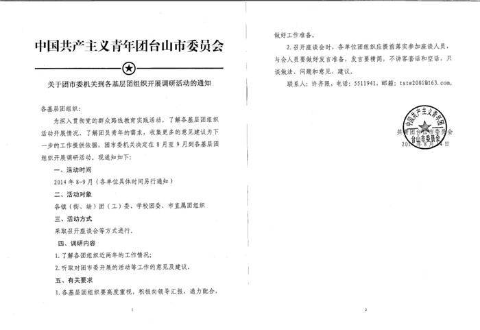 关于开展2014年度台山市“青年文明号”创建活动的通知