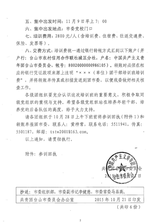 关于举办2015年台山市基层团干部培训班的通知