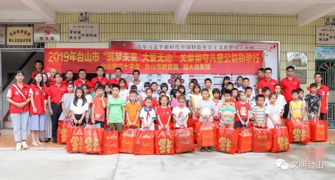7月24日,台山市教育局、市红十字会、昌大昌集团代表以及志愿者一行30多人前往冲蒌镇新时代文明实践分所开展“筑梦未来,大爱无边”关爱留守儿童公益助学活动,教育局党委委员陈卓光、红十字会办公室副主任梁丽芬、昌大昌集团董事甄源会、昌大昌总经理陈锐斌出席活动。