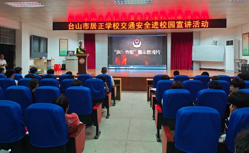 台山交警结合不同年龄层学生群体出行方式的特点,针对性、精准化地展开交通安全宣讲。通过开展沉浸式交通安全知识讲座、播放警示教育片、问答互动等方式,多形式、全方位地宣讲交通文明,提高同学们“知危险、会避险”的能力,并鼓励同学们将学到的交通安全知识带回家,向家长和亲朋好友进行宣传,通过“小手拉大手”的方式,带动全社会共同关注交通安全,营造良好的交通环境。