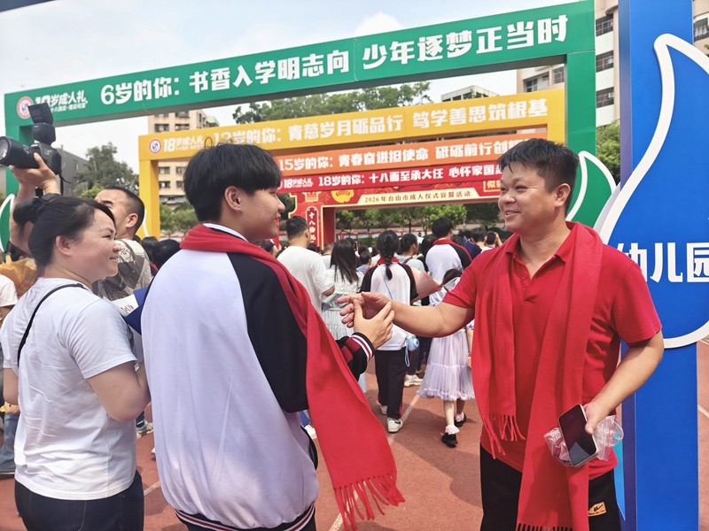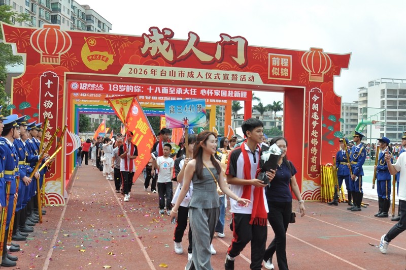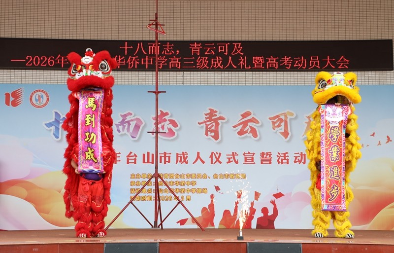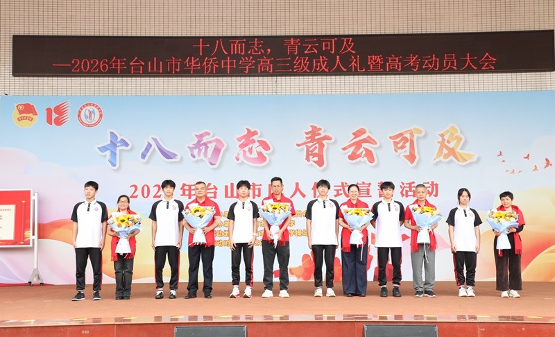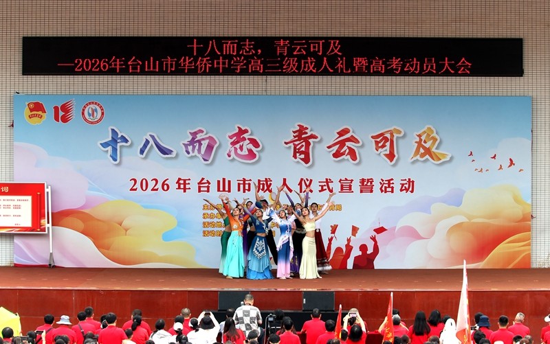 十八岁,是青春绽放的芳华年纪,更是担当重任与梦想起航的重要时刻。2026年3月29日,以“十八而志,青云可及”为主题的2026年台山市成人仪式宣誓活动在华侨中学举行,高三级全体师生以及家长等近3000人齐聚学校操场,共同见证这一庄严而温馨的时刻。