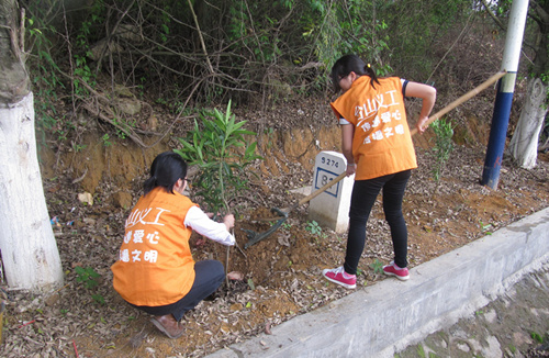 阳春三月,草长莺飞,又是一年植树绿化的好时节。为积极响应市义工联开展“弘扬雷锋精神,共建文明城市”学雷锋志愿服务月活动的号召,3月17日上午,台山公路局组织10余名义工在省道S274稔广线福利院至马尾湖路段开展了义务植树活动。刚到现场,义工们便积极投入到了植树活动中,分组行动,认真地填土、培实、扶苗、浇水,每个步骤都有条不紊,相互配合,团结互助。最后,经过大家的辛勤劳动,圆满完成了这次植树任务,公路两旁呈现出一片生机盎然的景象。此次活动不仅绿化美化了我市城口路段的公路通行环境,也进一步增强了作为公路人的绿化意识和责任意识。(江门市台山公路局 刘丽云)