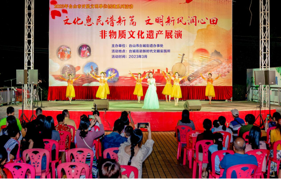 为深入贯彻习近平新时代中国特色社会主义思想,不断深化新时代文明单位创建工作,推动辖区非物质文化遗产的传承发展,让广大群众近距离接触非遗、认知非遗,深入了解我市非物质文化遗产项目,促进传统民间文化艺术繁荣和非物质文化传承。近期,由台城街道办事处主办的文明单位创建系列活动——“文化惠民谱新篇 文明新风润心田”非物质文化遗产展演在台城街道新时代文明实践所文体广场举行,持续深化文明单位创建。