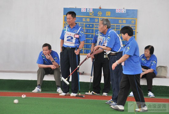 当天比赛有台城队、外经1队、农林水队、工业队、军休队以及老干2队等台城地区老干部门球六強在这里进行激烈较量。选手们全神贯注,互相配合,加油声喝彩声响过一阵又一阵,比分拉锯上升。经过激烈角逐,老干2队夺冠,亚军和桂军分别由军休队、工业队获得。