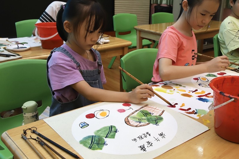 活动现场,授课教师用通俗易懂的语言介绍了端午文化的来源,在老师的指导下,同学们通过画笔把心中的端午展示出来。