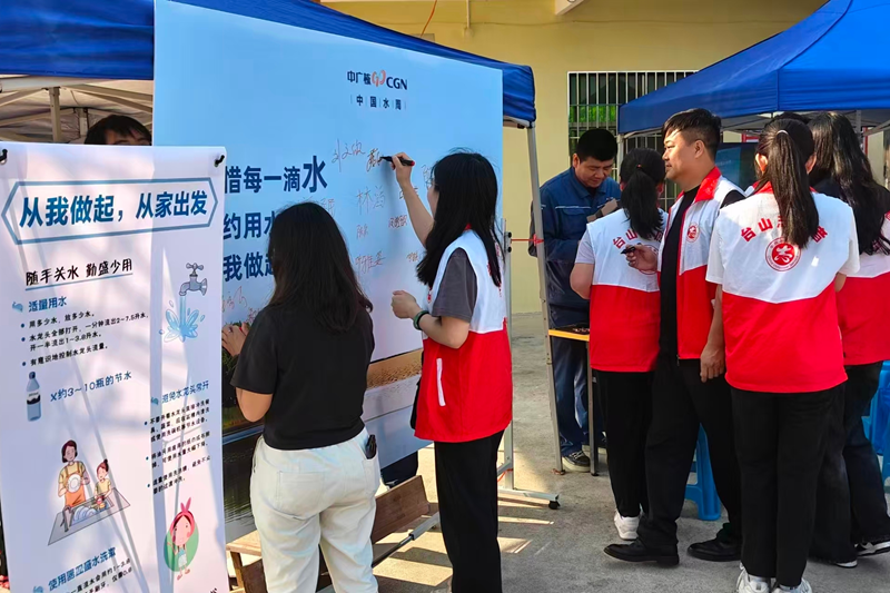 3月23日,台山市水利局联合台山核电合营有限公司,为赤溪中心小学的学生们带来一场生动有趣的节水讲座,并走进赤溪镇钦头村开展节水宣讲。