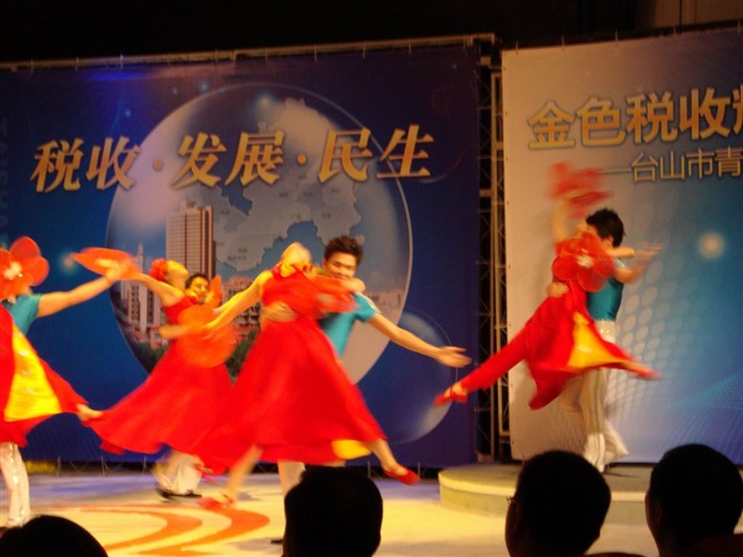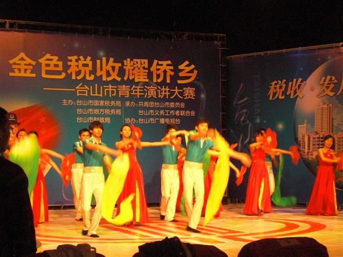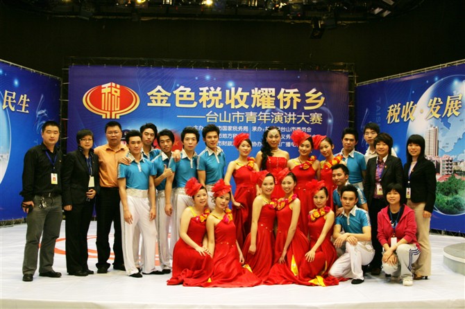 4月23日下午,“金色税收耀侨乡——台山市青年演讲比赛”总决赛在台山电视台演播大厅举行,义工联舞蹈队排练的舞蹈《阳光路上》作为嘉宾节目被邀请参加了演出,并获得了成功,这是舞蹈队成立后首次参加的演出。