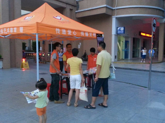 名到义工分别到台城侨雅花园和六福山庄两个小区摆摊设点进行“月饼代表我的心”爱心月饼募集活动,倡议小区的居民,积极参与该项活动中来。