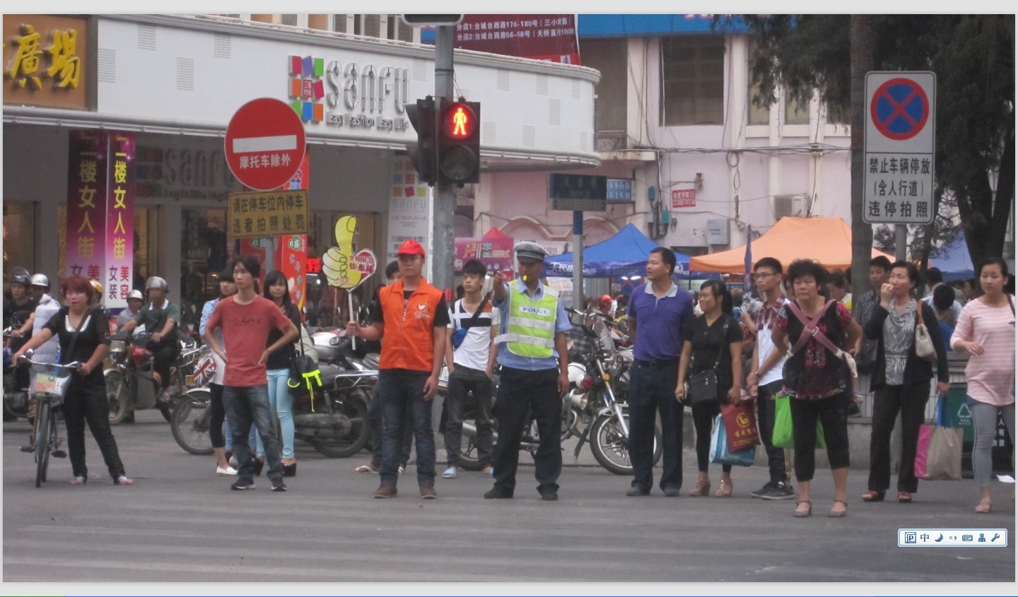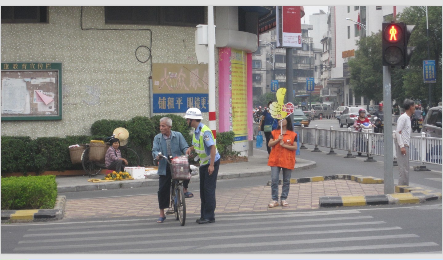 日,市义工联组织了10多名义工到台城各个交通要点开展文明劝导活动,义工们与交警一同走上街头,宣传文明交通意识。