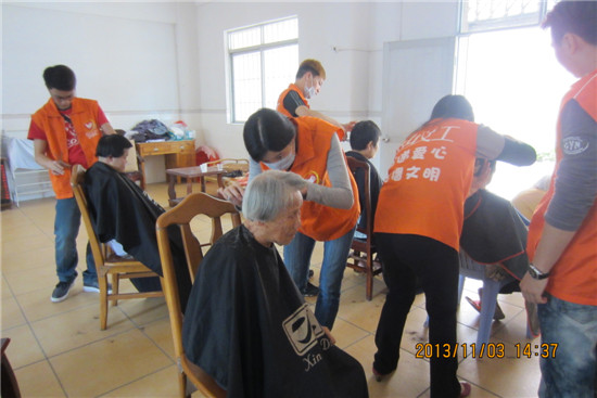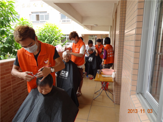 11月3日下午,市义工联组织了新大地美发义工队和社会义工共20人,一起来到四九敬老院为老人家进行义剪。义工们到达敬老院后,开始分工合作,有的为老人家理发,有的为老人家修剪指甲、脚甲,有的为老人穿针引线缝补衣服,有的则拿起扫把搞卫生。经过一阵的忙碌之后,公公婆婆们彼此望着精神焕然一新的自已,都很开心。看到老人家们的笑容,义工们都觉得很开心,大家在一起共度了一个愉快的下午。