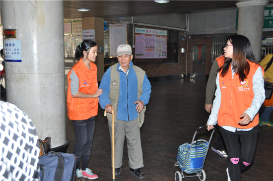 1月28、29日,市义工联组织了10多名义工到台山汽车总站开展“温暖春运行 情暖回家路”志愿活动。