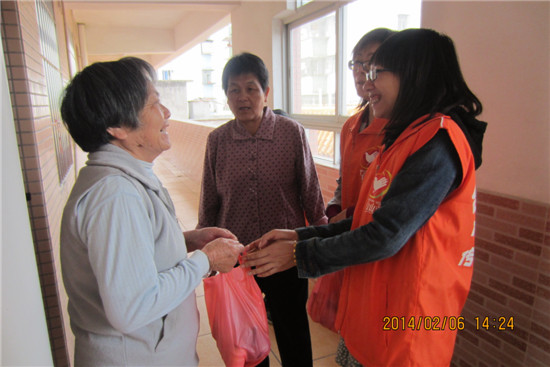 2月6日大年初七,6名台山义工相约到四九镇敬老院,给老人家拜年。当天下午,义工们将准备好的水果、饼干、牛奶等物品,跟随着敬老院的院长,分发到各个房间并对老人们进行拜年。“公公,新年好,身体健康、龙马精神。我们是台山义工,给您拜年啦!”欢声笑语不断在敬老院内响起,看到义工们在新年来探访,老人家很开心,接过义工们送来的新年礼品,纷纷表示感谢。