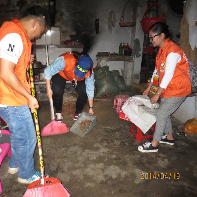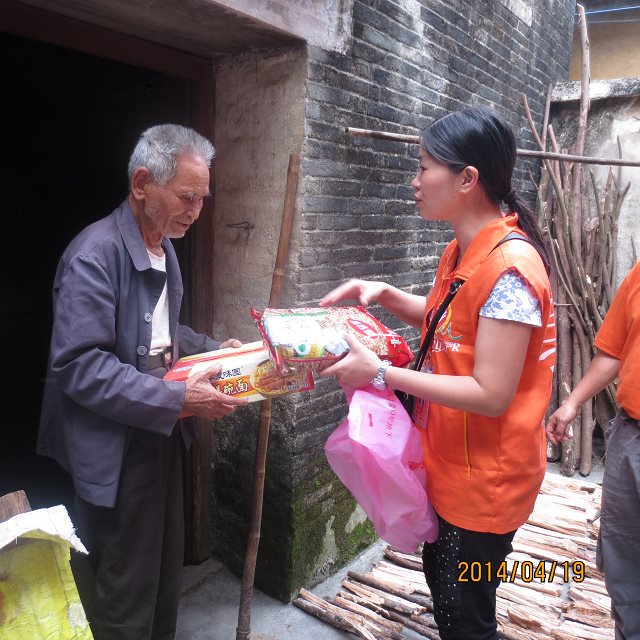 4月19日,市义工联阳光计划工作组的10名义工朋友带上慰问品,在当地村干部的陪同下,到台城大亨村委会和五十办事处对5户低保家庭进行了探访。他们除了给这些家庭送去了慰问礼物和关怀之外,还帮忙搞卫生。同时,他们还对这些家庭进行了资料的登记,以备日后的回访之用。